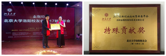 年會上洛陽泰斯特榮獲北大洛陽校友會殊貢獻(xiàn)獎。