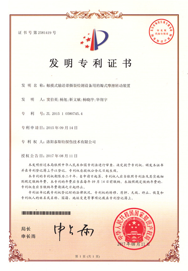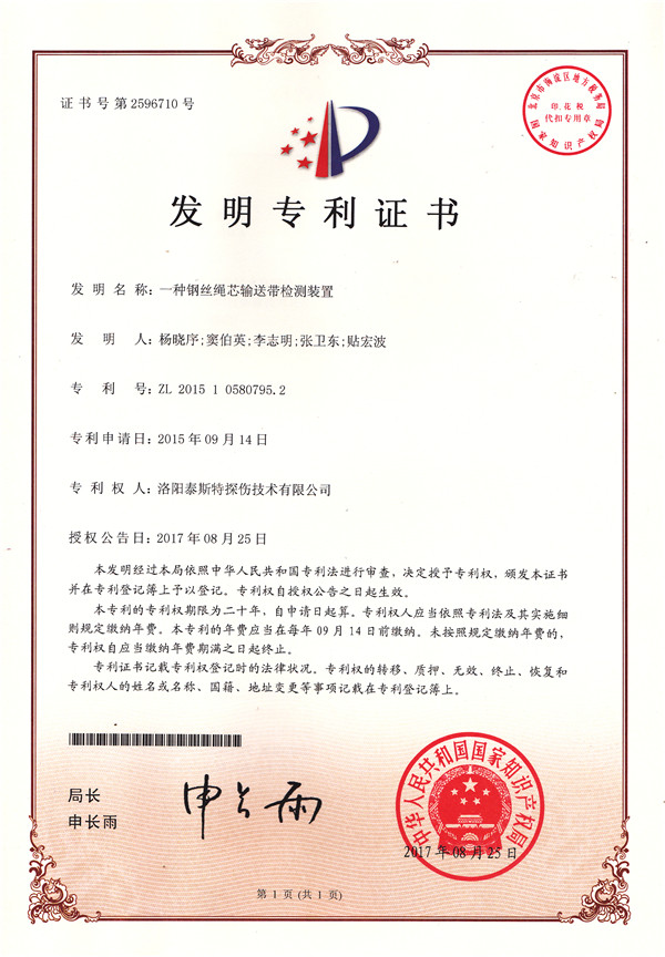 金秋碩果盈滿枝,洛陽泰斯探傷技術有限公司(簡稱TST)喜獲知識產權局頒發的四項發明利證書,分別是: