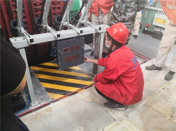 山東的安裝現(xiàn)場,工程師胡同輝、翟碩飛馬不停蹄的在淄博市、阜山市和招遠(yuǎn)市奔波,相繼安裝了3套四繩提升機(jī)鋼絲繩在線監(jiān)測系統(tǒng),現(xiàn)場與客戶進(jìn)行技術(shù)交流,并做培訓(xùn)3場。