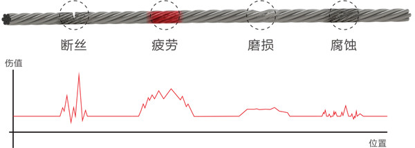 鐵磁構件因表面破損會產生漏磁場,或因內部損傷和疲勞過度而產生局部磁場突變信息,泰斯特鋼絲繩智能在線監控系統為智慧礦山提供7*24小時的鋼絲繩安全監測,能夠及時完整地提取異常信息,智能自動定量判別、準確評估鋼絲繩安全狀態。同時融入物聯網等技術使安全監測信息從局部、分布式終端融入整體安全信息數據庫,實現安全管理“無邊界”互聯互通。