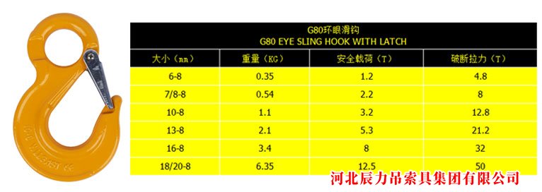 河北辰力G80環(huán)眼滑鉤 4倍破斷 ***標(biāo)準(zhǔn)